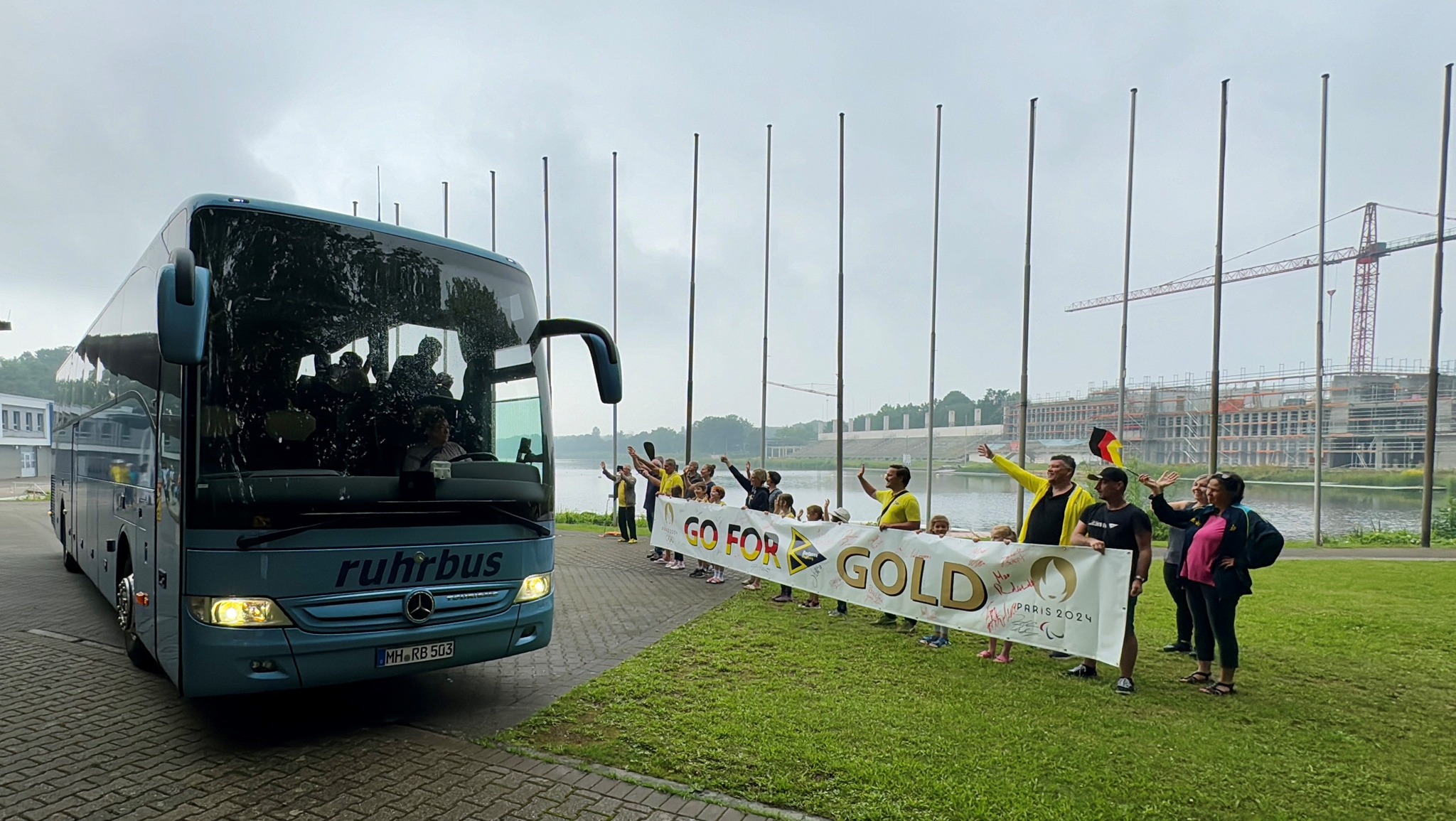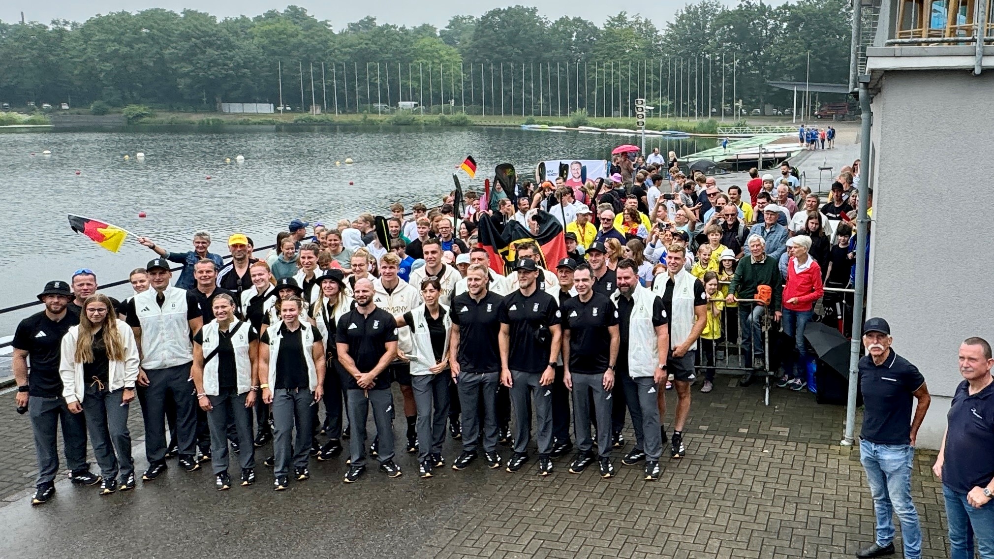 Am 03.08.24 verabschiedeten wir unser Kanurennsport Olympiateam. Dazu wurde vereinsseitig ein 8m langes Banner erstellt. Viele begeisterte Fans und Gruppen unseres Vereins waren mit dabei. Nun heißt es die Daumen zu drücken.